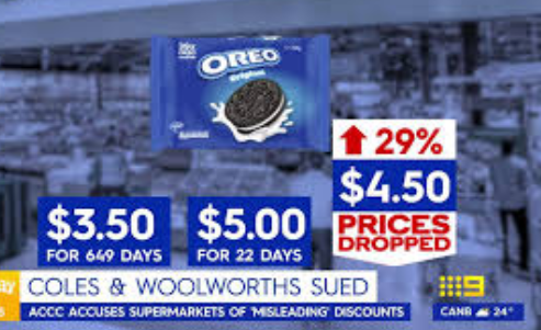 根据ACCC的调查,Woolworths先后在20个月时间里,对266种商品进行两个这种虚假折扣销售,Coles的数据是245种。