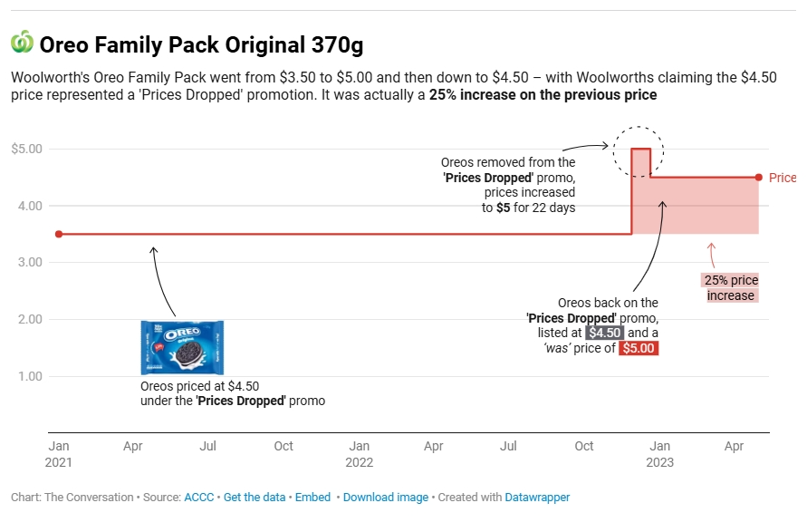 但是,在2022年的11月末,Woolworths突然开始对这款奥利奥进行涨价,在大半个月时间里,将奥利奥价格涨到了5澳币!