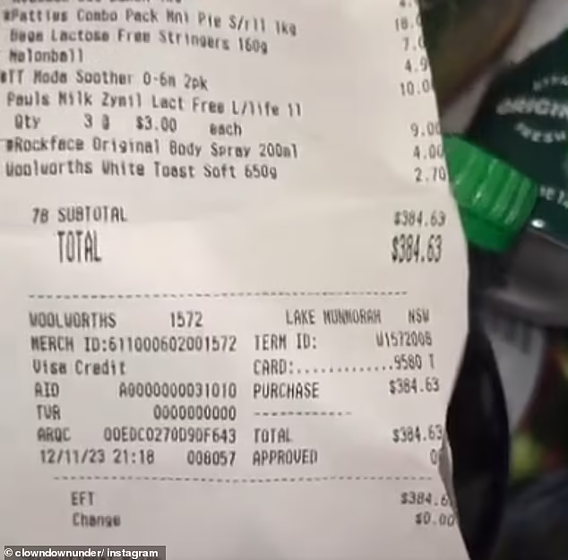 接着,他拿出收据,显示他此次的购物花费高达384.63澳币。