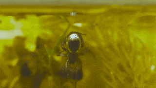 这些蜥蜴并不是唯一会利用气泡潜入水中的动物,潜水钟蜘蛛也会使用气泡在水下呼吸,不过,蜘蛛的气泡不在头上,而是在"屁股"上。甚至它们还会利用气泡在水里建造一个气泡之家,吃饭、繁殖和育儿等活动都完全在气泡中进行。