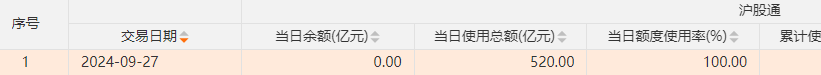 数据还显示,上周五(9月27日),外资用完了沪股通和深股通总计1040亿元的额度。