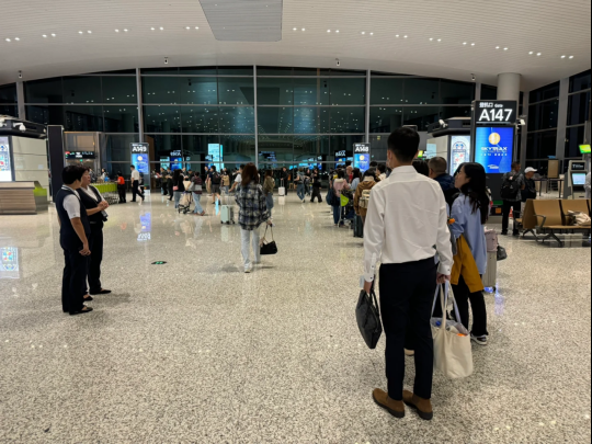 有网友在社交媒体上发来了现场的照片,飞往澳洲的登机口前的队伍,一眼都望不到头!