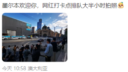 “墨尔本欢迎你,网红打卡点排队大半小时拍照”