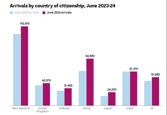 虽然仍然没恢复到疫情前,但上月公布的最新数据显示,自COVID-19以来,中国首次成为了来澳旅客数量中排名第二的国家,仅次于新西兰!