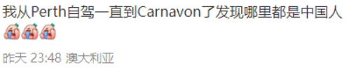 有网友评论说,自己一路从Perth自驾到Carnavon,发现一路都是华人。