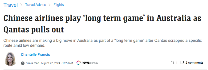未来还有多家航司正在计划澳洲直飞航线,这也是中国入境游市场正在恢复的迹象之一。