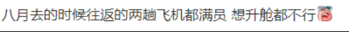 “八月去的时候往返的两趟飞机都满员 想升舱都不行”