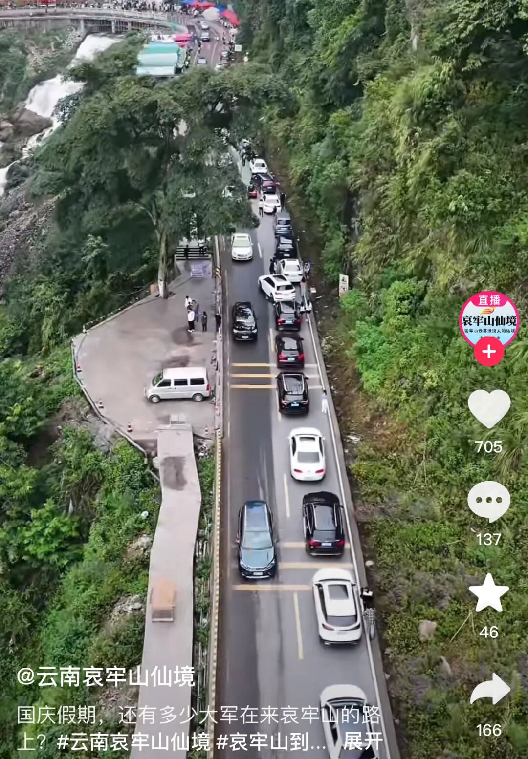 10月3日,@云南哀牢山仙境 发视频称:“国庆节假期,哀牢山旅行来了一亿人。”