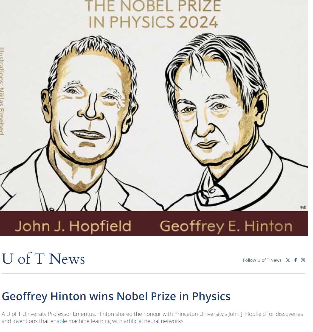 有“人工智能教父”之称的多伦多大学计算机科学家辛顿博士(Geoffrey Hinton)与普林斯顿大学91岁的物理学家和荣休教授John Hopfield共同获得诺贝尔物理血浆。
