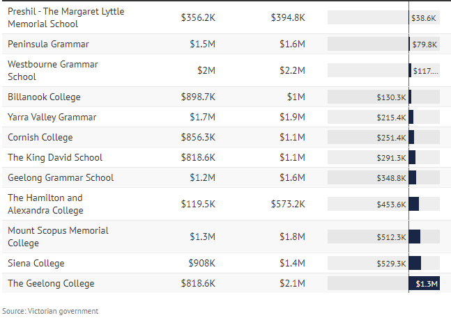 另外两所学校 Ivanhoe Girls' Grammar 和Mentone Girls' Grammar 分别在 2021 年和 2022 年报告出现赤字,Ivanhoe Girls' Grammar 在其 2022 年财务报告中指出,学校运营受到了疫情的严重影响。