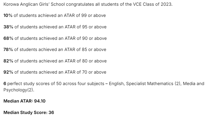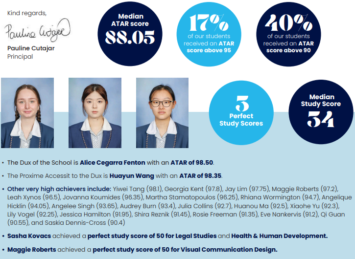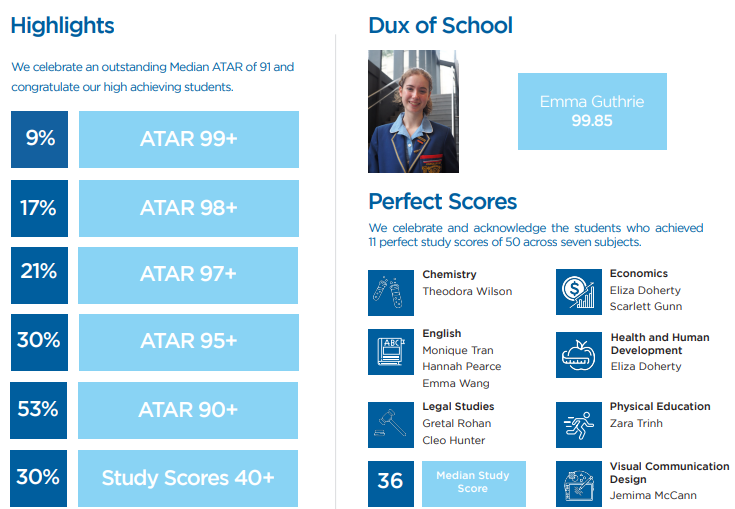 而该校在2023年VCE中的表现如下所示: