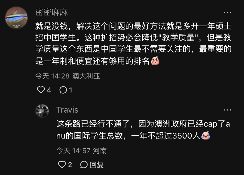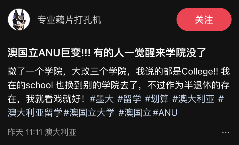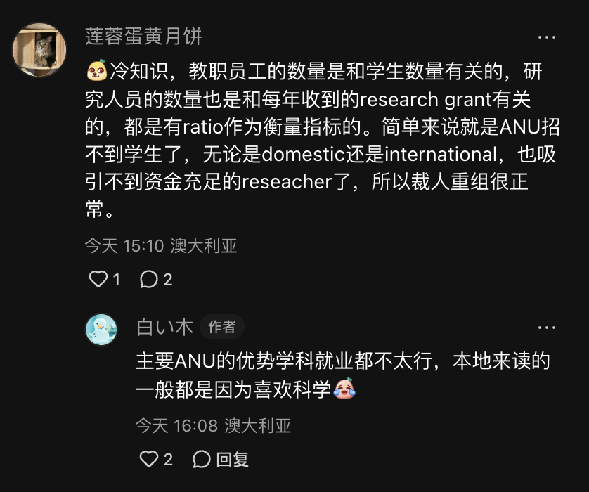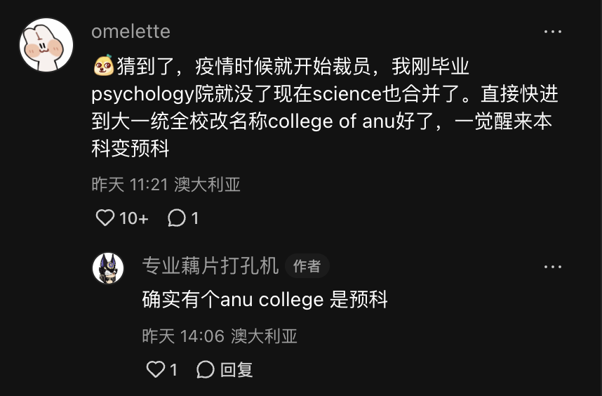 这一系列举措在社交媒体平台上引发了广泛的讨论。小红书网友们对ANU学院的整合表示出不同的看法,评论中既有对现状的无奈,也有对未来发展的担忧。