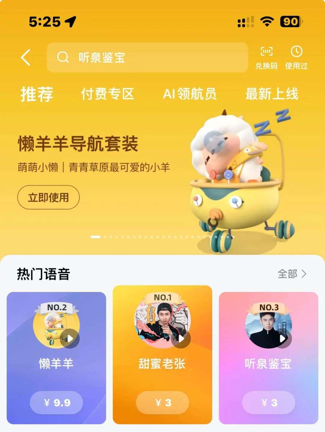近日高德地图上线了“听泉鉴宝付”费语音包,短时间内该语音包就已位列高德热门语音第三位。除此之外,听泉鉴宝还成为了游戏“无畏契约”的夜市福利官。