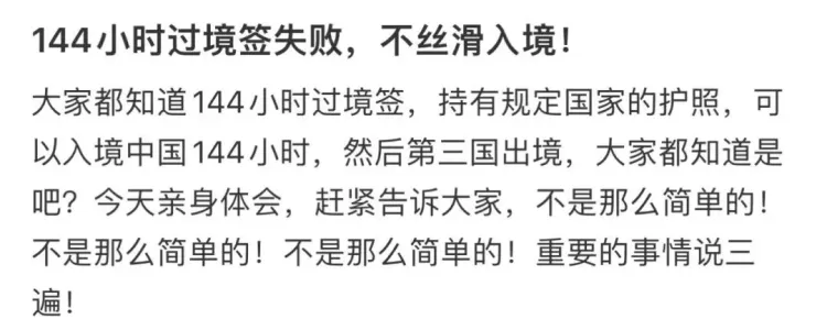 就在前段时间,一位澳籍华人希望通过144小时过境签回国,没想到入境过程并没有想象中那么丝滑。