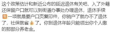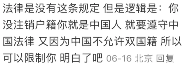 有网友认为,这个新政可能和最近新公布的延迟退休有关,也有人说是因为中国不承认双重国籍,只是现在开始严格执行。