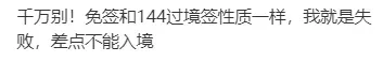 有网友提到,15天免签和144过境签性质是一样的,他就是差点不能入境。