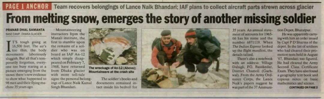 直到2003年7月,登山教练Inder Dev Sharma的一次偶然发现,才证实了坠机猜测。