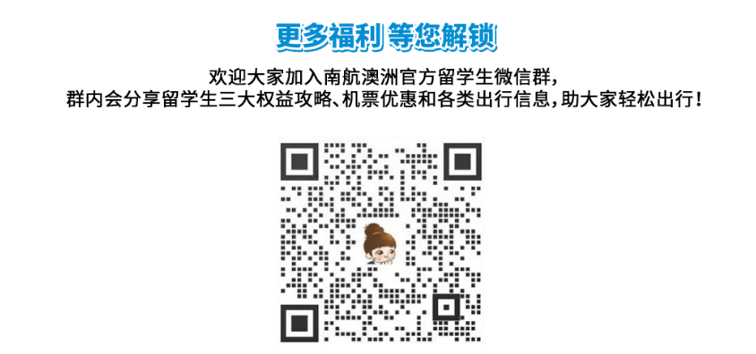 活动内容:留学生在南航澳洲官网留学生专享特惠页面成功认证留学生身份后,在留学生专享特惠页面购买机票,可以享受包括额外行李、专属折上折票价以及灵活的退改签政策。