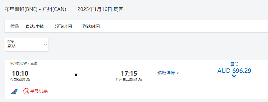 旺季布里斯班回国航班量有所增加,大家选择更方便啦~如果利用我们的早鸟优惠回国,以北京为例。往返含税的价格为785澳币起~