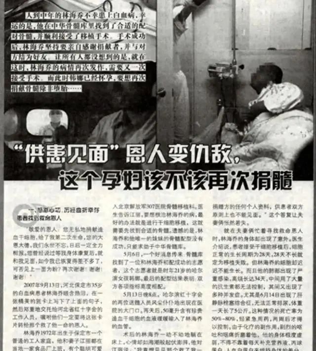 老家在河北的林海乔,原本有着平静幸福的生活,直到在2006年,他在单位意外晕倒,被送往医院后,被医生告知患上了白血病。
