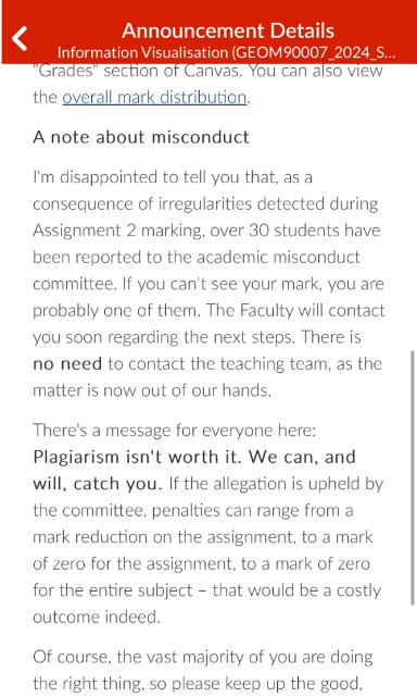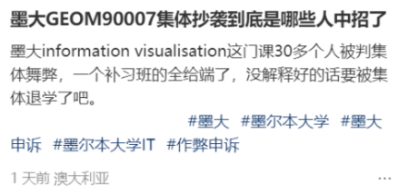 编号为GEOM90007的information visualisation课程,30多名学生集体被判舞弊。