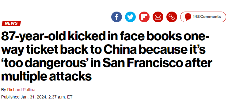 如今,这种无差别攻击比比皆是。今年1月,《纽约时报》就有报道过87岁的中国老伯Jing Liao在旧金山被陌生人袭击事件。