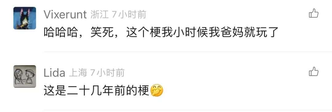 其实“这是二十几年前的梗”“这个梗我爸妈小时候就玩了”