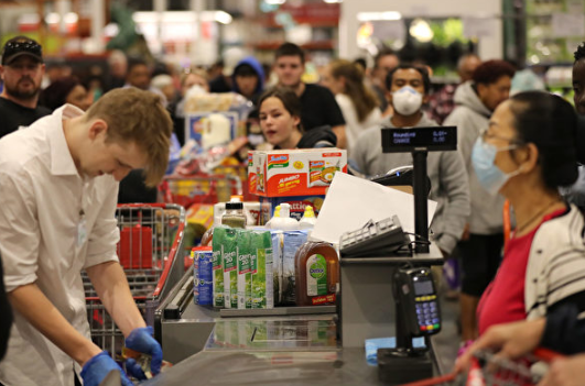 图为在珀斯Costco仓储超市购物的消费者排队结账。(Paul Kane/Getty Images)