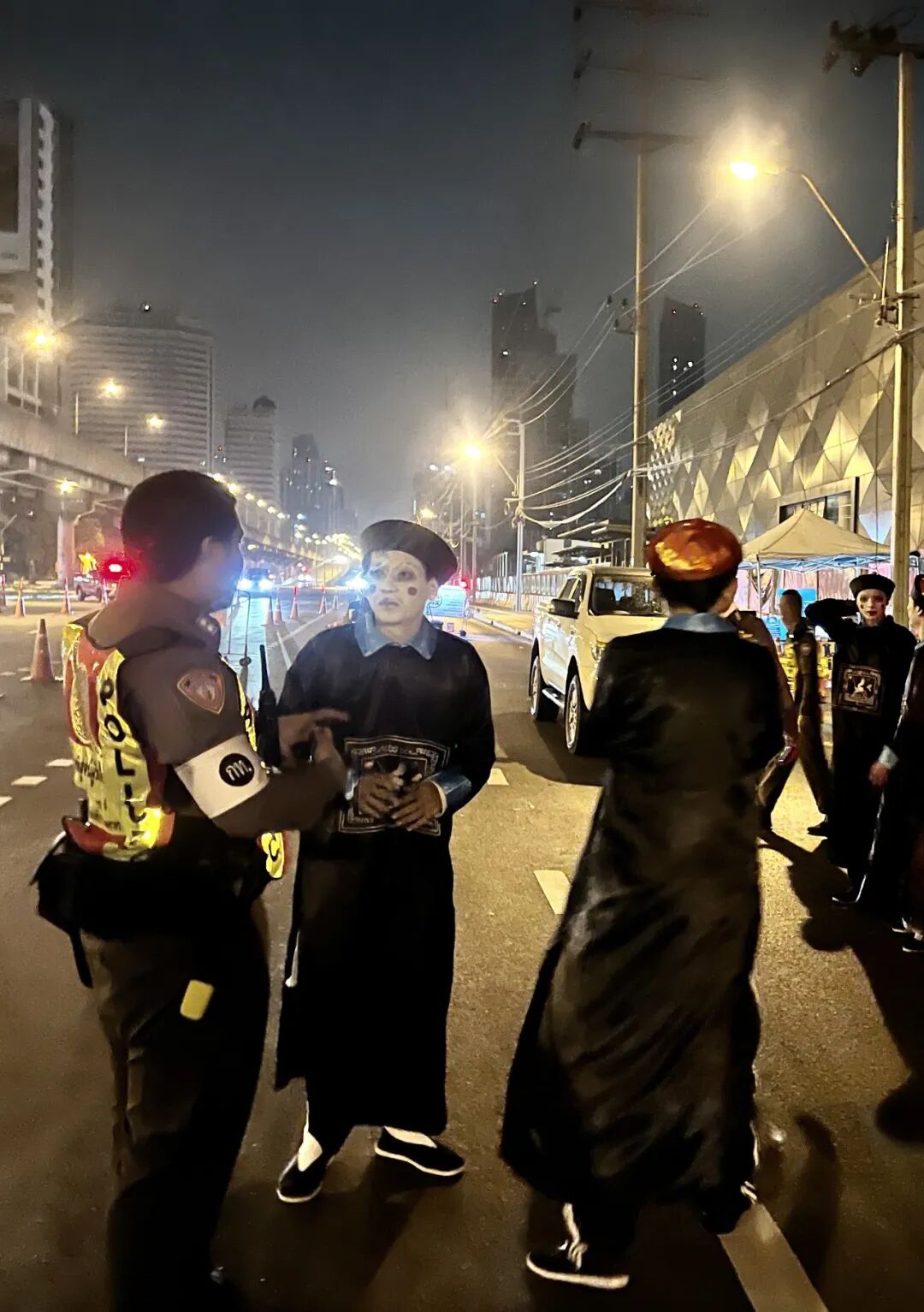 “中国僵尸说:我…我只是来泰国过万圣节啊!这全球Fashion无国界啊..啊sir….泰警说:不准假扮游客!”