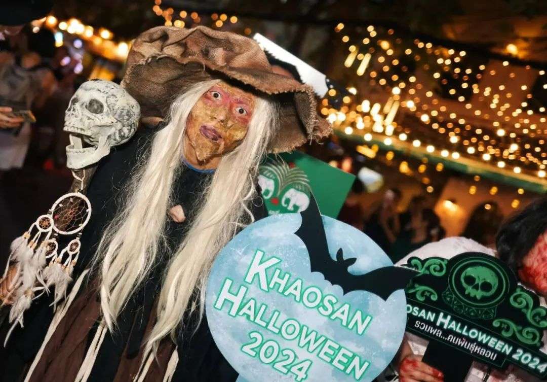 2024年10月31日和11月1日晚,泰国曼谷考山路街头万圣节气氛浓烈,许多民众及游客化上恐怖妆容变身“鬼怪”,营造恐怖的鬼夜气氛。