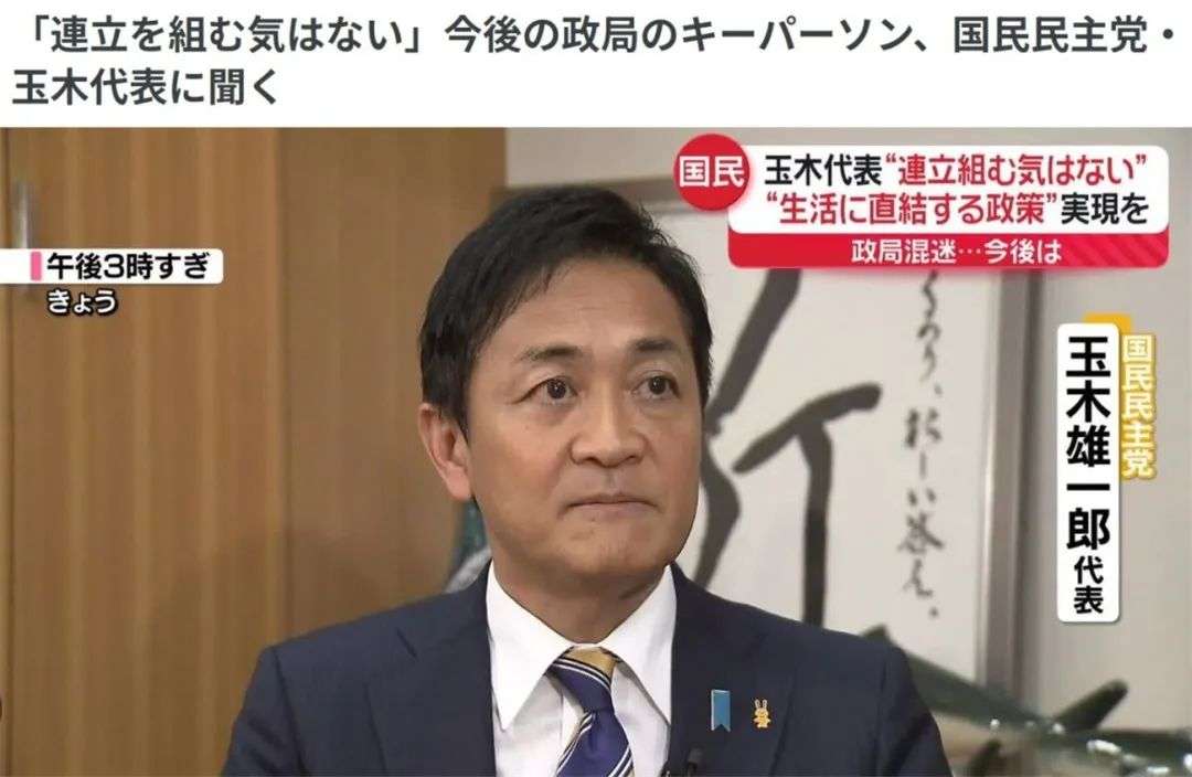 现在看,自民党主导的执政联盟有意跟国民民主党进行政策联合,但国民民主党党首玉木雄一郎此前表示拒绝。然而,日本媒体近日报道说,他的立场有所动摇。