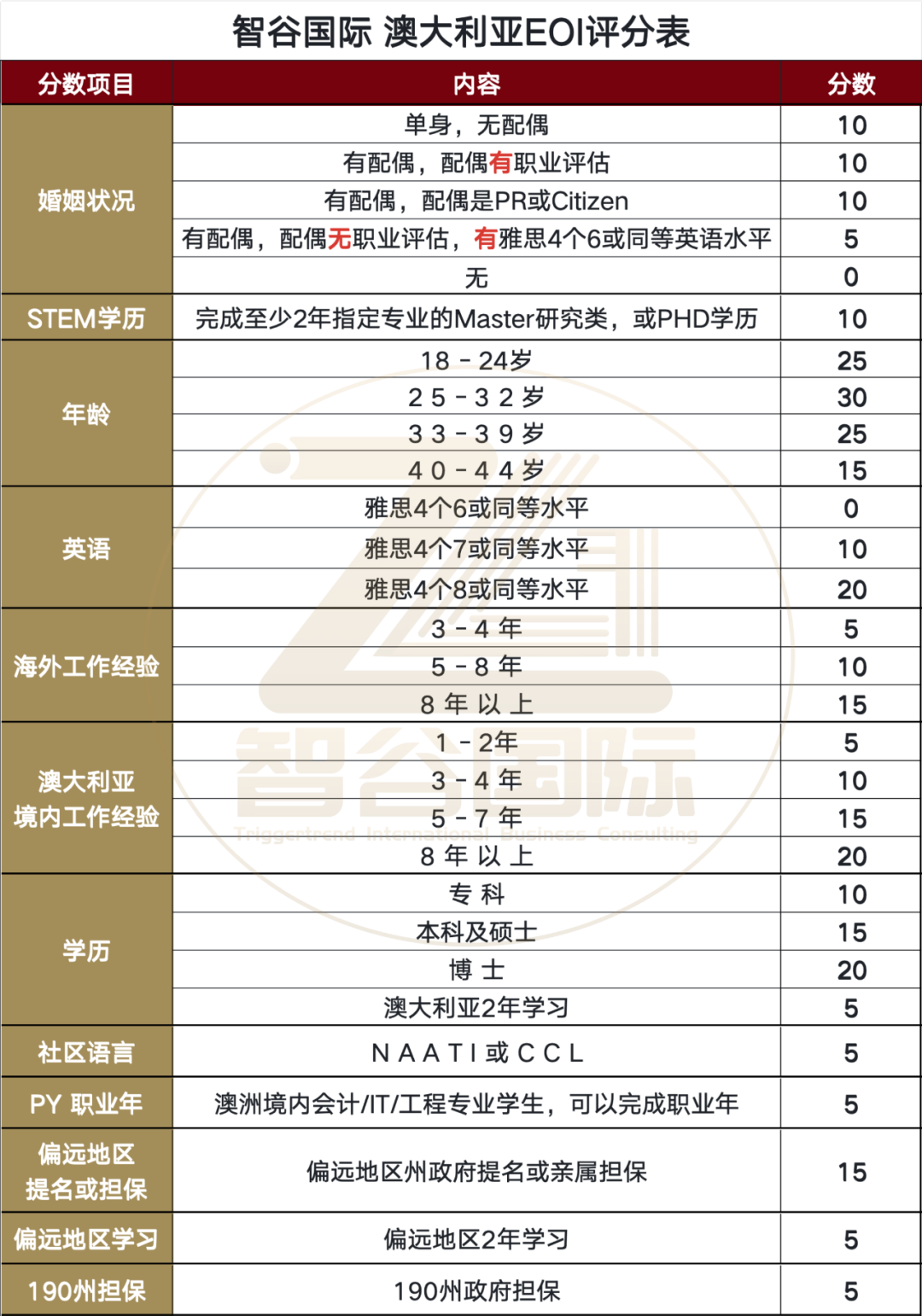 ·EOI:最低65分(州担保15分加分)