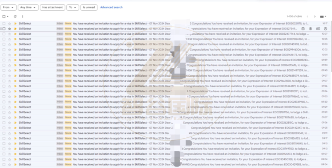 我们澳洲的同事发来贺电,就我们同事办理的,就有多达140+份获邀,以下是部分收到邀请的邮件,为了保护客户信息做了模糊处理⬇️