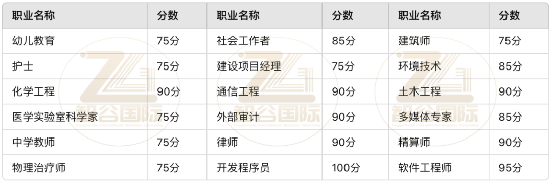 通道三:低收入必要职业类。灵活性更高,工作经验要求降低至一年。