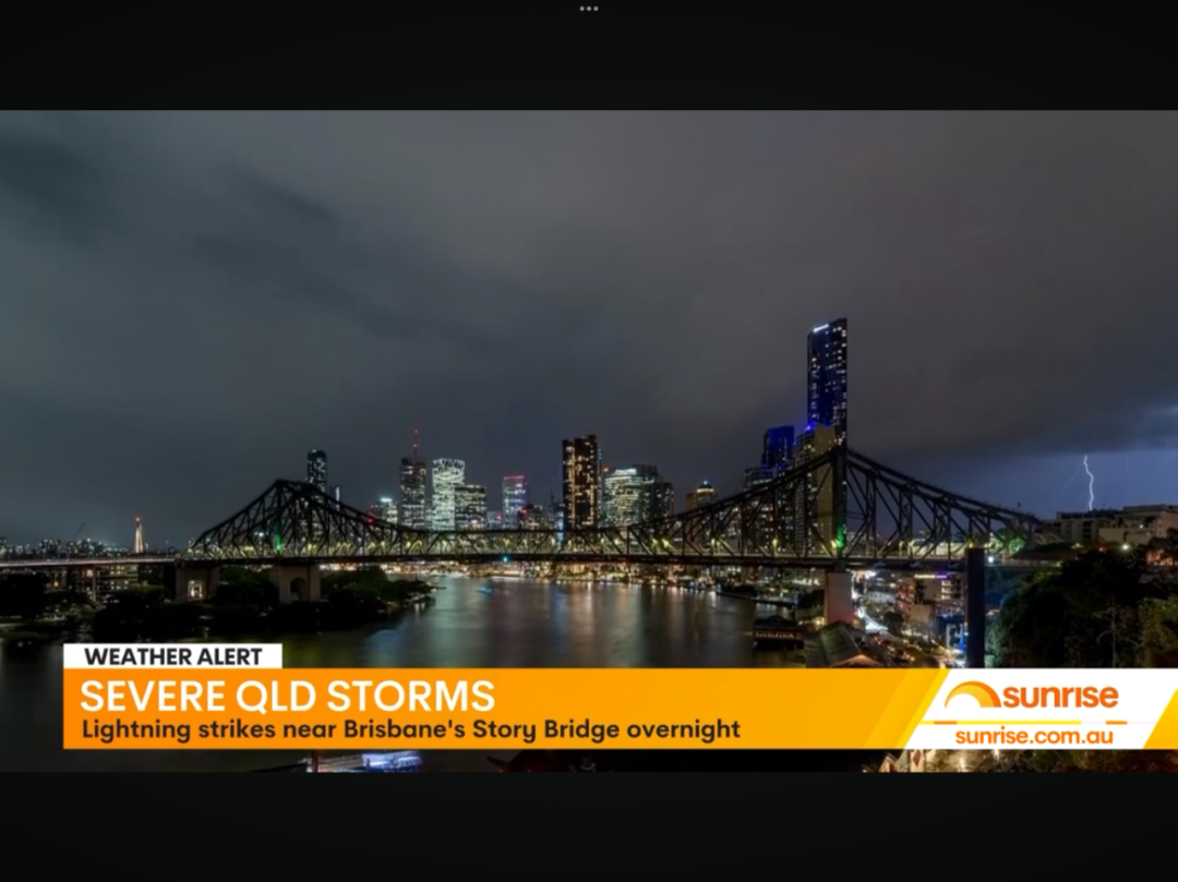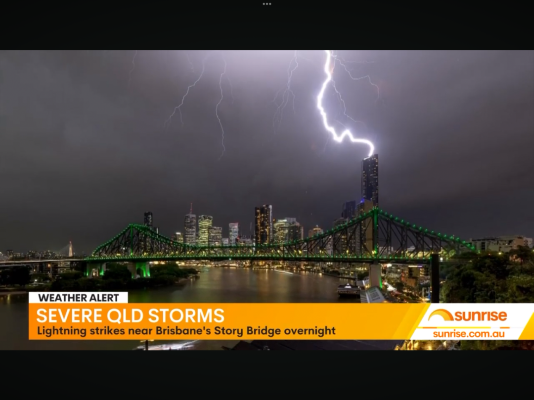 东南昆士兰连续几日遭遇了雷暴天气,导致了飞机乘客受伤,Story Bridge灭灯等情况。