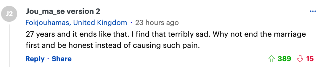 “27年就这样结束了。我觉得这太可悲了。为什么不先结束婚姻,坦诚相待,而不是造成这样的痛苦呢?”
