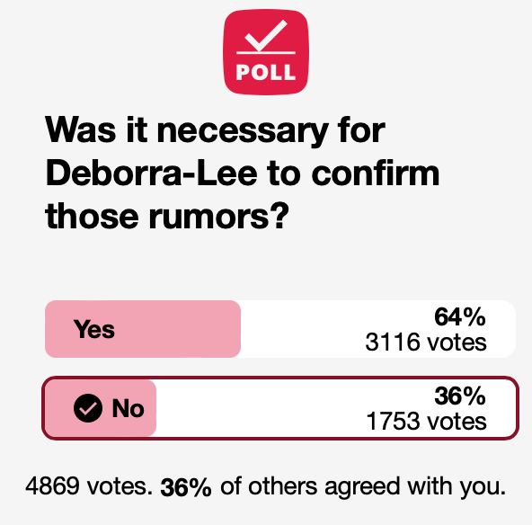 根据网站民调,6成受访者认为黛博拉有必要揭露真相,为自己而战: