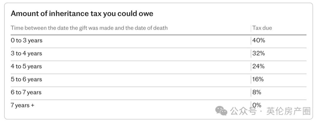 根据英国法律,在去世前7年以上赠送的礼物、钱财不算作遗产的一部分。如果不超过7年,则需要按比例缴纳遗产税。