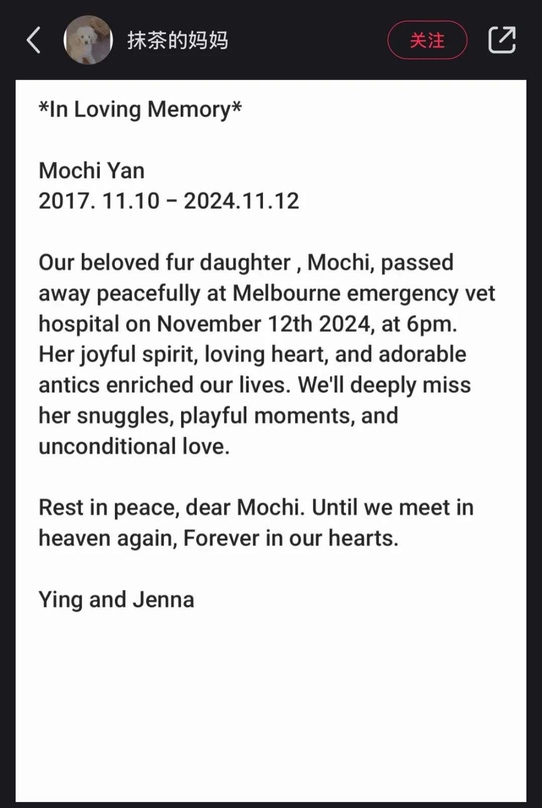 而就在出事的两天前,抹茶才过完她的第7个生日。