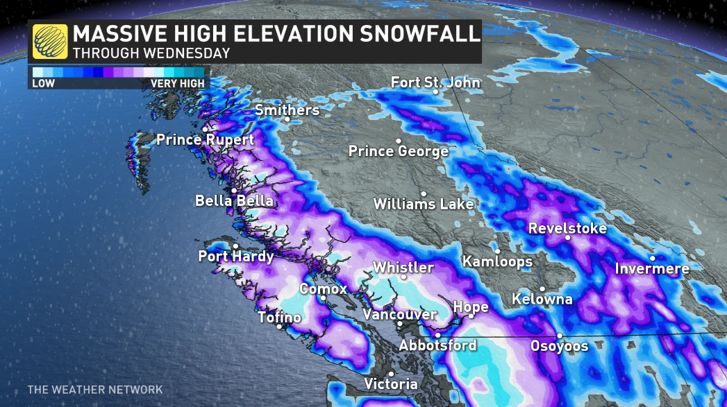 不仅如此,这场风暴可能还会给温哥华带来本季第一场雪。根据苹果的天气应用程序,周二温哥华可能将有小雪。