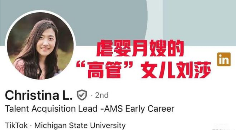 据了解,尽管目前毒保姆刘桂田已经逃回中国,原本有消息表示,刘桂田的女儿是硅谷某大厂的招聘负责人(Recruiter Lead),而女婿是一名工程师。目前两人已经停薪留职在家,并未被公司正式辞退。