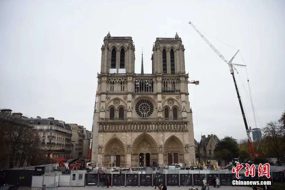 图为巴黎圣母院的各项修复工程仍在紧张进行。李洋 摄
