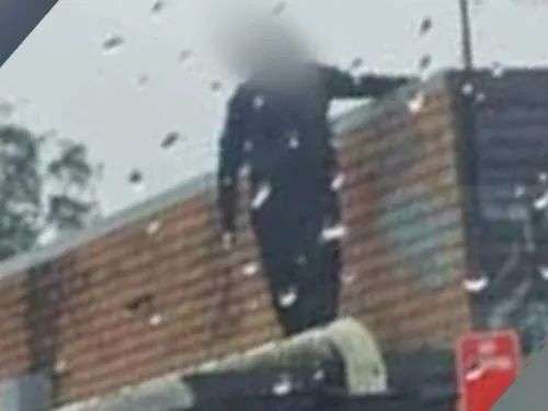 “视频里有一个全身穿黑衣的人,他站在店铺的房顶上,然后跳到后面去了。”