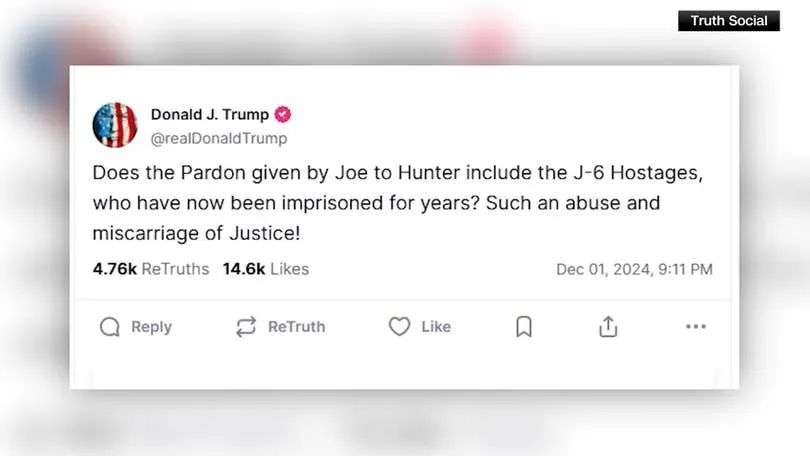 共和党那肯定是更直接抨击了。特朗普在真实社交上写道:“乔给予亨特的赦免是否包括已被监禁多年的国会山暴乱人质?这真是滥用职权和司法不公!”