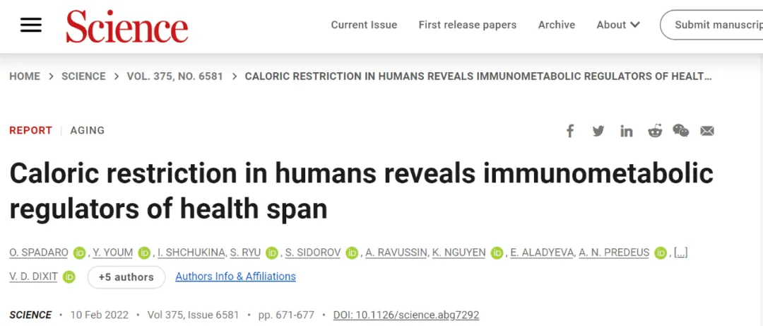 ⑤Caloric restriction in humans reveals immunometabolic regulators of health span.Science, 2022; 375 (6581): 671