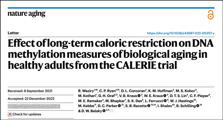 ③Effect of long-term caloric restriction on DNA methylation measures of biological aging in healthy adults from the CALERIE trial. Nature Aging.2023.