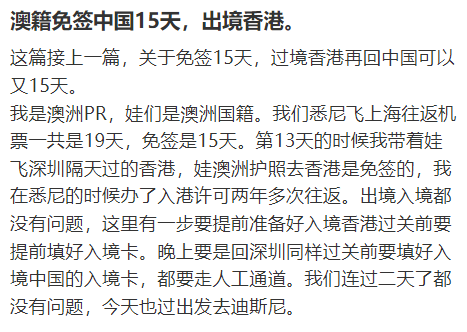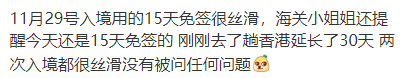 有网友称,部分小伙伴最近回/去中国大陆,根据政策可以享受15(11.30之前)/30天(11.30之后)的免签入境,实际上可能并不丝滑。