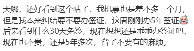 也有不少网友表示,最稳妥的办法还是老老实实办个签证,现在有5年多次,签证费也可以接受,就当图个放心。
