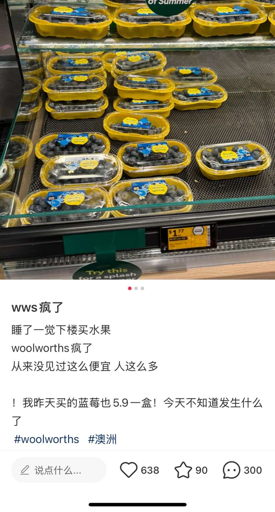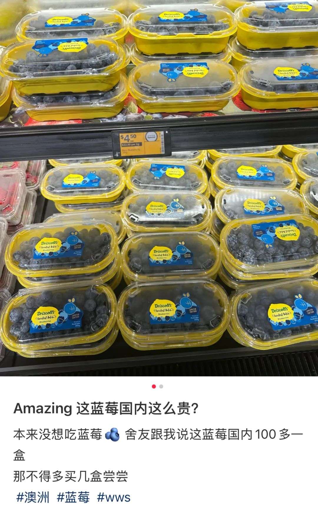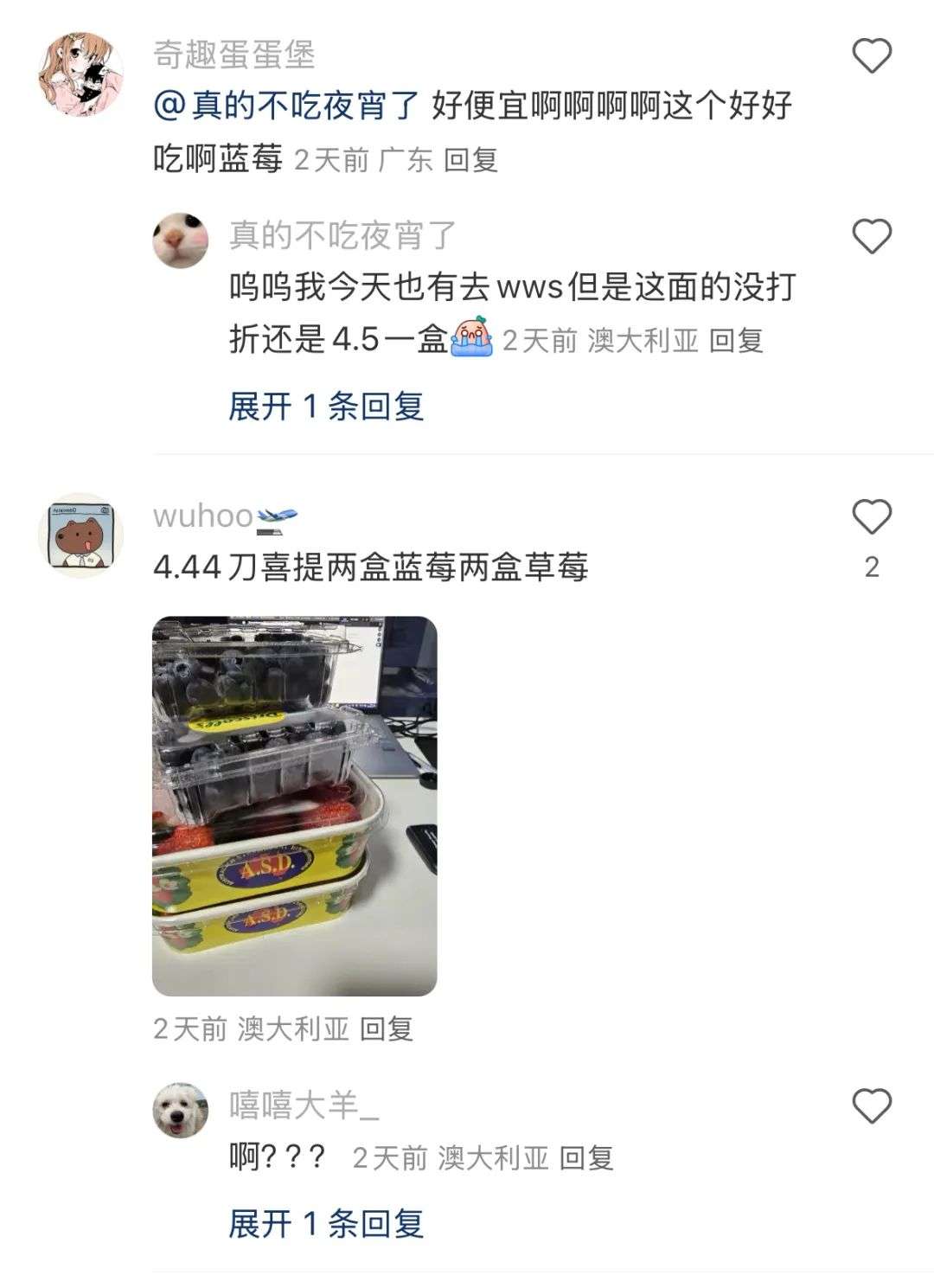 在社交媒体上,有在澳洲的华人网友兴奋晒图,说蓝莓创历史低价: