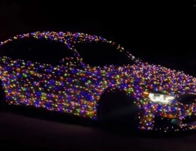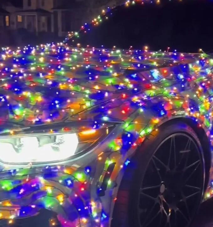 报道中称,社交媒体上流传的视频显示,有人使用小彩灯、金属箔装饰物和其它节庆装饰品将自己的车装饰成五光十色的。